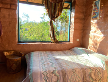 Casa de barro con dos habitaciones, una con cama de dos plazas y otra con litera (cama de dos plazas y cama de plaza y media).