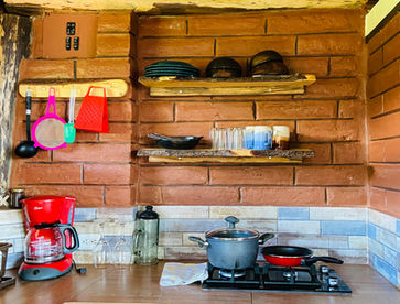 Cuenta con cocina de inducción equipada, comedor pequeño y baño completo. En el exterior dispone de un corredor con horno de leña pequeño.